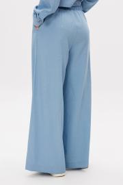 Брюки свободные, на эластичном поясе, с прорезными боковыми карманами.