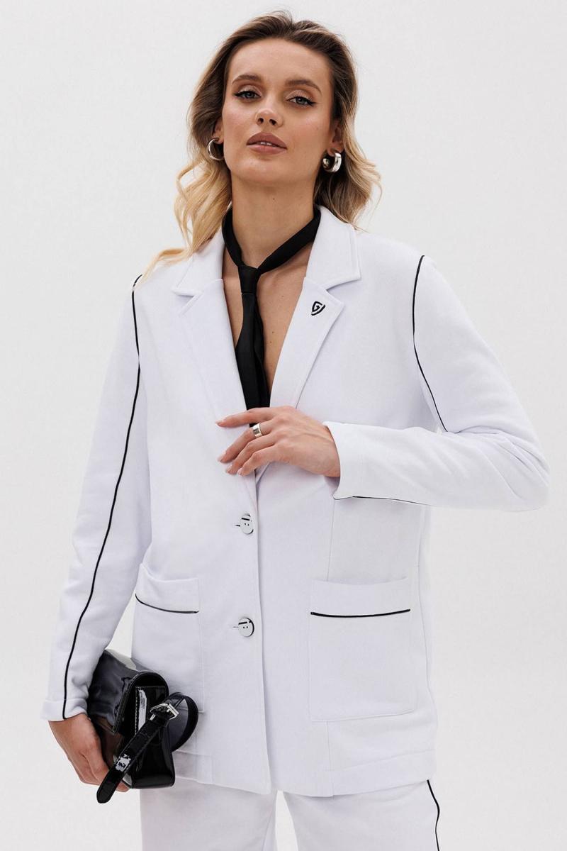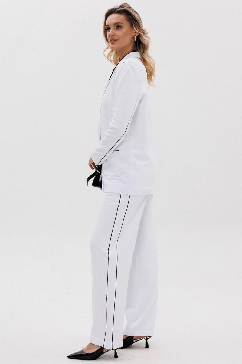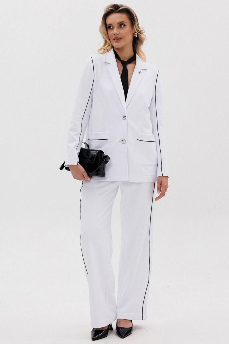 Костюм в стиле smart casual с контрастными кантами в швах создаст в меру строгий и одновременно расслабленный образ как для работы, так и торжественного мероприятия.