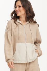 Стильный костюм из зип худи и брюк. Выполнен из мягкого комфортного фактурного ( рубчик) трикотажного полотна Зип худи свободного кроя со спущенным рукавом. Низ рукава дополнен манжетой. Горловина обработана капюшоном, дополненным декоративным шнуром. Капюшон и карманы выполнены из плащевой ткани. Центральная застежка на металлическую молнию Брюки прямого свободного кроя, с притачным поясом, дополненным эластичной тесьмой. Посадка средняя. По бокам брюки дополнены удобными карманами. Длина худи от плечевого шва 61 см. Длина рукава 60 см. Длина брюк 108 см