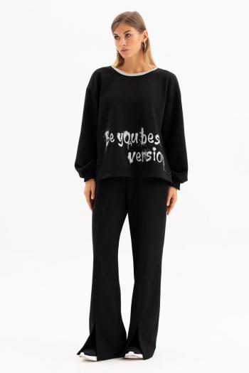 54 Блузка: Длина изделия - 65см, Длина рукава - 39см, Ширина плеча - 7см, Ширина по груди - 59см, Ширина по низу - 64см, Ширина рукава - 23.8см; Брюки: Высота посадки - 29см, Длина брюк без пояса - 103см, Длина по внутреннему шву - 78.5см, Ширина брючин сверху - 83см, Обхват брюк по низу - 57.5см, Ширина по бедрам - 64см, Ширина по талии - 43.5см;