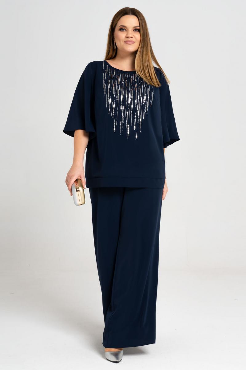 56 Блузка: Длина изделия - 66см, Длина рукава - 39см, Ширина плеча - 7см, Ширина по груди - 61см, Ширина по низу - 66см, Ширина рукава - 24.5см; Брюки: Высота посадки - 29.5см, Длина брюк без пояса - 103.5см, Длина по внутреннему шву - 78.5см, Ширина брючин сверху - 85см, Обхват брюк по низу - 59.5см, Ширина по бедрам - 66см, Ширина по талии - 46см;
