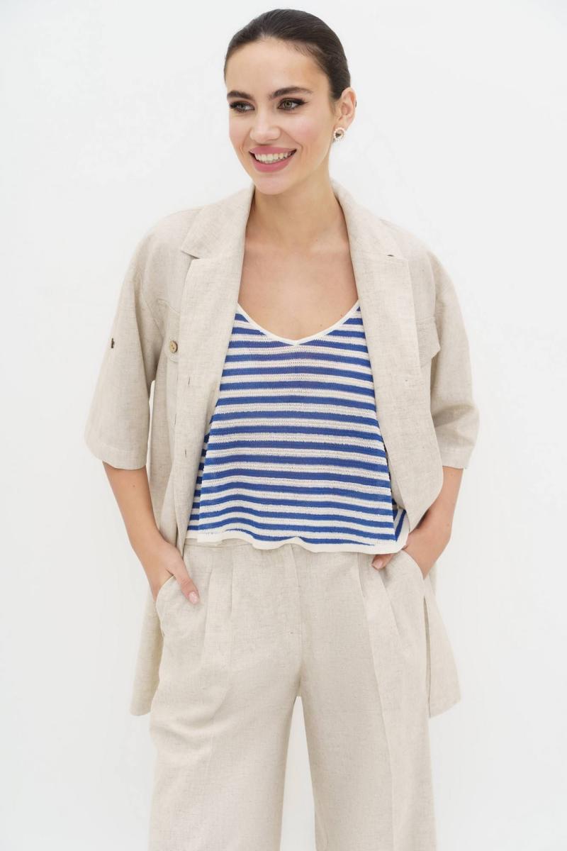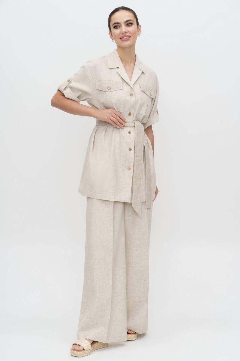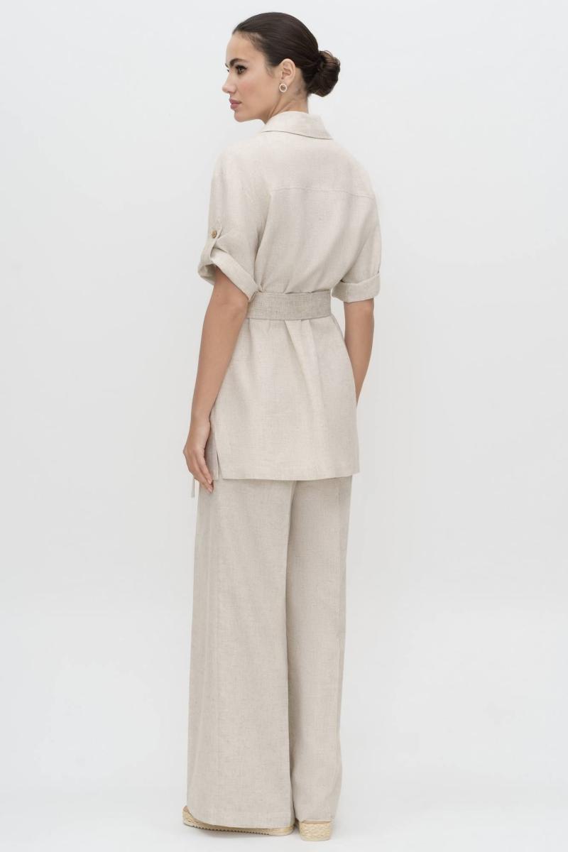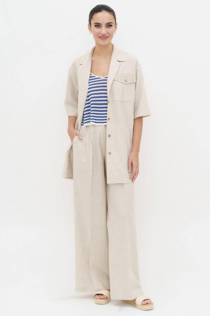 Легкий и комфортный льняной брючный костюм натурального цвета - ваш идеальный выбор для стильного и элегантного образа в жаркие летние дни. Качественная ткань, изготовленная с добавлением натурального льна, обеспечивает непревзойденный уровень комфорта, позволяя коже дышать. Безупречная посадка и стильный дизайн делают этот костюм превосходным выбором для летних прогулок.