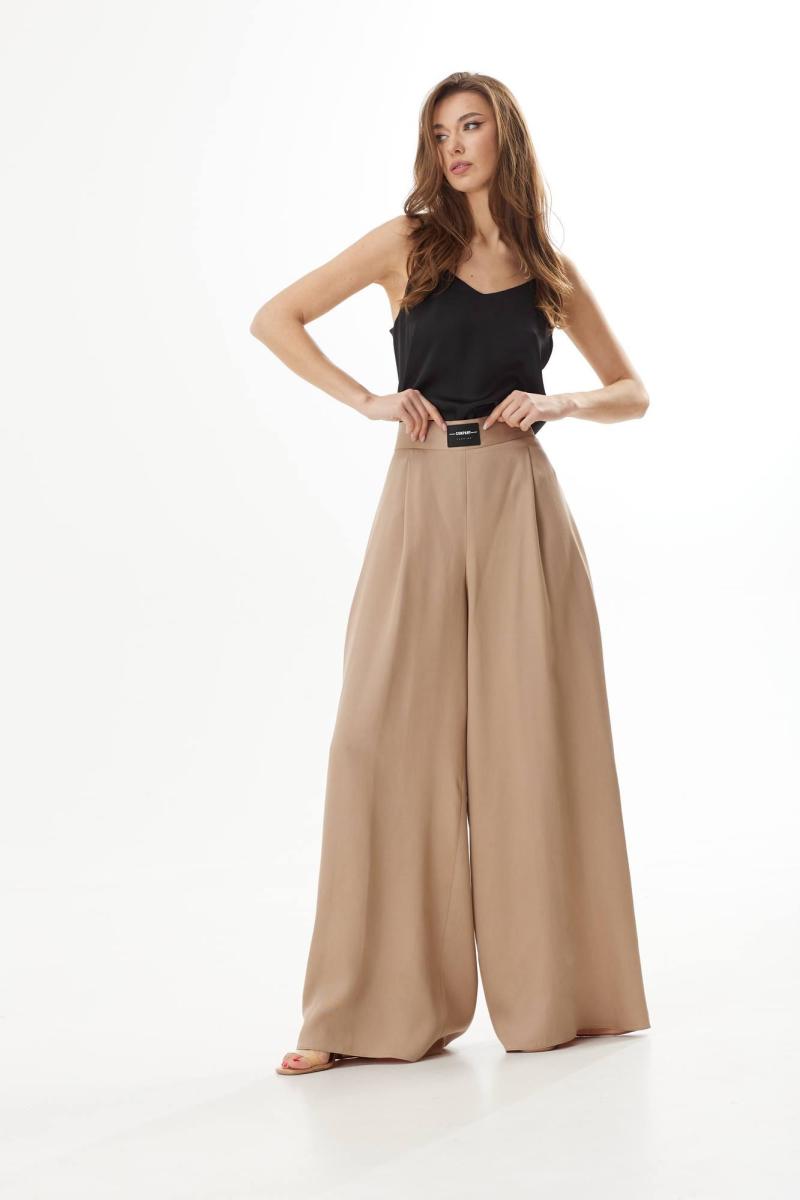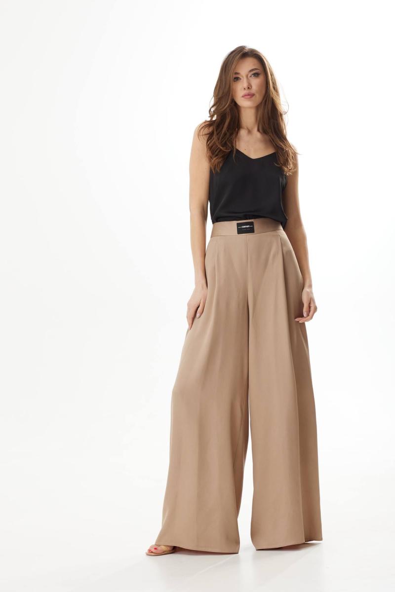 Комплект 2-х предметный: блузка и брюки.Топ из атласной ткани на бретелях. Вырез горловины V-образный. Бретели регулируемые. Брюки палаццо. Верх на притачном поясе. Застежка на