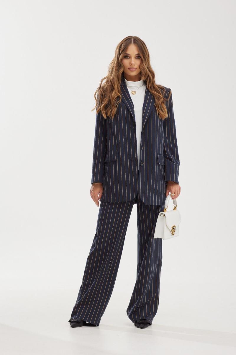 44 р-р: жакет: ОГ - 106 см., ОТ - 104 см., ОБ - 106 см.; джемпер: ОГ - 120 см., ОТ - 104 см., ОБ - 94 см.; брюки: ОТ - 75 см., ОБ - 104 см.