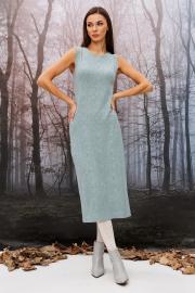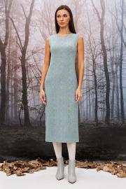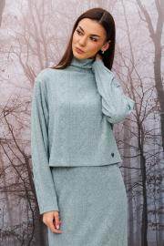Костюм 2-ух предметный состоящий из платья и джемпера. Джемпер прямого силуэта, короткий, со спущенной линией плеча. Рукав втачной. По переду пришито сердце с гравировкой "BUTER". Воротник стойка цельнокроеная. Платье прямого силуэта, длинной миди, без рукавов.