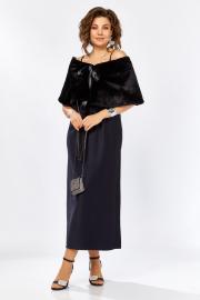 Изысканный комплект сочетает в себе платье из плотного атласа, свободного А образного силуэта ,изящной меховой горжеткой создавая образ утончённой элегантности женственности Это идеальный выбор для вечерних мероприятий , когда хочется выглядеть выразительно, сдержанно и благородно .