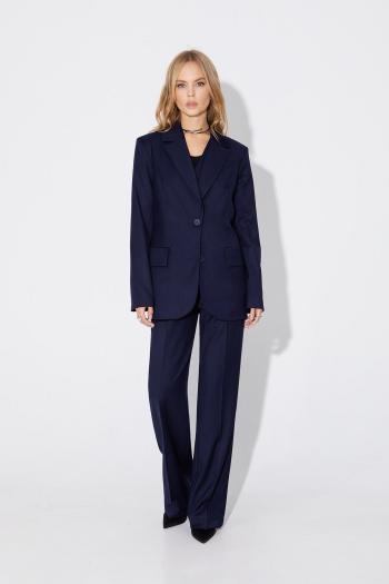 Костюм женский двухпредметный, состоящий из укорченного жакета и юбки. Костюм выполнен из хлопкового однотона высокого качества. Жакет свободного силуэта, с центральной застежкой на петли пуговицы. Воротник рубашечного типа , рукав двухшовный со шлицей и притачной манжетой. Юбка высокой посадки, с шлицей спереди и застежкой в верхней части на пуговицы.