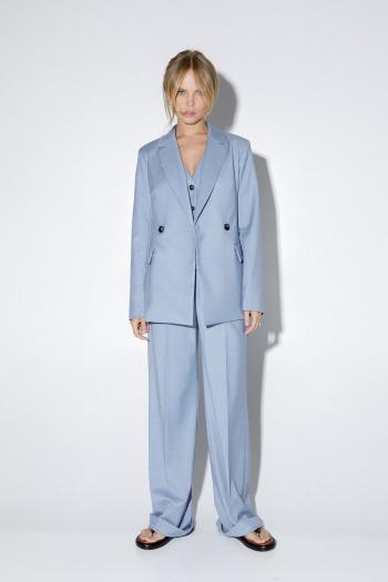 Джинсовый женский костюм без подкладки с юбкой и жакетом. Жакет свободного силуэта с V-образным вырезом горловины и рукавами со спущенной линией плеча; по переду сверху имитация карманов с декоративной патой, снизу функциональные накладные карманы; линия низа с фигурными углами. Юбка полуприлегающего силуэта "на запах" с завышенной линией талии и притачным поясом, по спинке которого вставлена резинка; в боковом шве застежка на молнию, петлю и пуговицу. Материал при правильном уходе не теряет своих свойств. Инструкция по уходу: - джинсовые вещи стирают отдельно от других вещей (закрывают всю фурнитуру, пуговицы, кнопки); - выворачивают на изнанку; - джинсовые ткани не рекомендуют сильно отжимать, лучше пользоваться бережной стиркой.