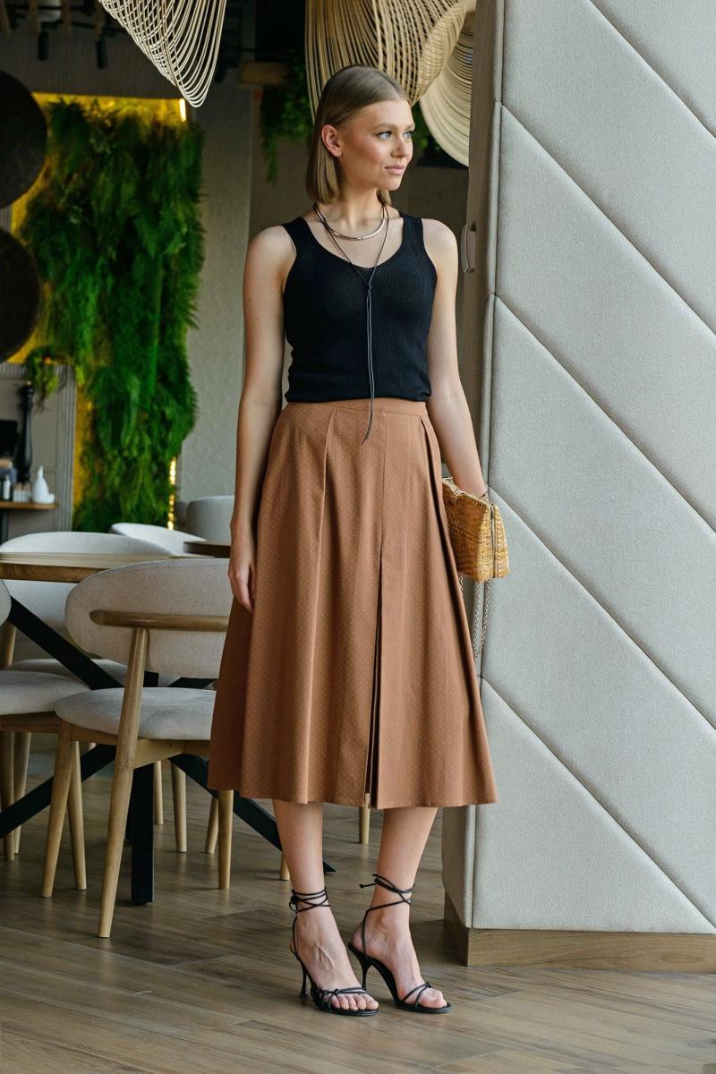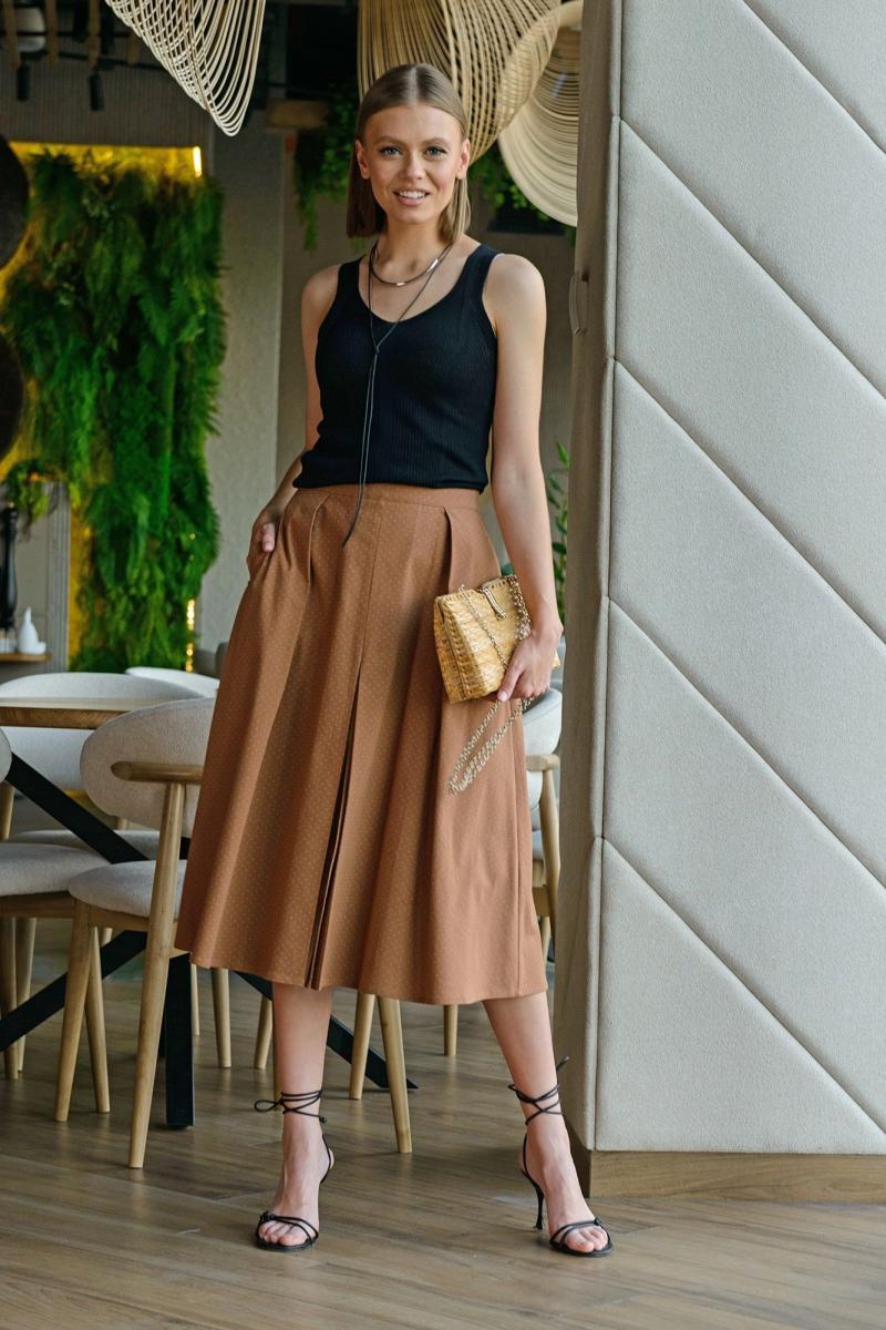 Лёгкий трикотажный топ к комплекте с юбкой миди из полотна премиального качества. Блузка и юбка подойдут для создания различных образов с другими вещами из вашего гардероба.