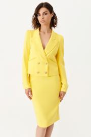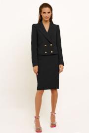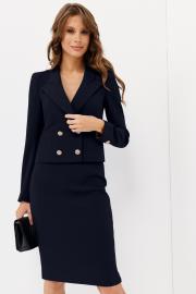 Стильный женский костюм с жакетом и юбкой решит вопрос с созданием образов в официальном стиле. Трикотажный костюм женский хорошо подойдет для прохладного лета и межсезонья. Укороченный жакет с двубортным воротником украшен четырьмя пуговицами, по две в ряд. Дополняет его прямая юбка длиной до колена. Костюм пиджак и юбка женские можно носить самостоятельно или сочетать с майками, футболками, блузками. Для завершения строгих образом подойдут туфли-лодочки на каблуке. Закажите классический юбочный костюм по выгодной цене уже сегодня.