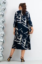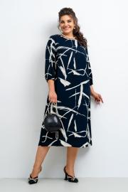 Платье А образного силуэта с округлым вырезом горловины и застежкой капелькой по спинке. По переду нагрудные вытачки. Рукав втачной одношовный с резинкой по низу. Спинка ср средним швом. Длина платья 102 см, длина рукава 46 см.