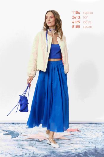 Платье женское из хлопчатобумажной ткани с принтом «горохи» и шитьем. Платье полуприлегающего силуэта, отрезное по талии; без подкладки, с плечевыми накладками, с центральной застежкой на 10 обметанных петель и 10 пуговиц, с воротником рубашечного типа на стойке. Лиф переда с кокетками, нагрудными вытачками и двумя складками от талии. Лиф спинки с кокеткой и рельефными швами. Кокетки переда и спинки выполнены из вышивки. Юбка с карманами в боковых швах. Низ юбки декорирован фестончатым краем. Длина по центру спинки 134 см. Рукава втачные, короткие, одношовные. Длина рукава 26-27 см.