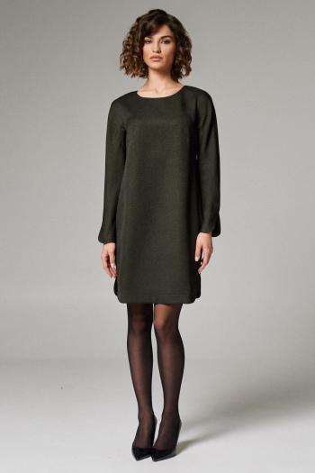 Платье полуприлегающего силуэта, отрезное по линии талии, с застёжкой на потайную тесьму-молнию в среднем шве спинки. Перед верхняя часть на запах, нижняя часть с талевыми выточками и отлетной фигурной деталь с застроченными мягкими складками. Спинка нижняя часть с талевыми выточками. Рукава втачные, одношовные, длинные, по окату со сборкой.