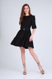 Нет ничего прекраснее, чем маленькое черное платье, которое просто незаменимо для создания модного лука. Изделие А-образного силуэта, отрезное по линии талии с воланом и сборкой по низу, что делает образ обладательницы платья очень женственным и хрупким. Рукав втачной одношовный. Длина ¾ на манжете с эластичной тесьмой. Горловина округлой формы с потайной застежкой молнией, расходящейся вверху в треугольный вырез. Лиф платья обработан нагрудными и таллиевыми выточками. К платью прилагается съемный эластичный пояс с пряжкой.