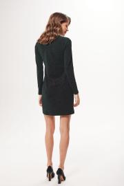 Платье женское, приталенного силуэта, выполнено из эластичного трикотажа с металлизированной нитью . Горловина округлой формы . Рукав втачной одношовный . Данная модель платья - идеальное дополнение к гардеробу современной девушки .