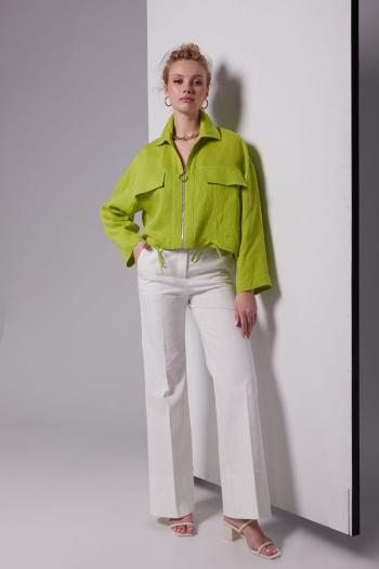 Платье-мини, из ткани костюмно-плательного ассортимента, плотный атлас с матовым блеском. Платье без рукавов, на тонких бретелях, отрезное по талии. Лиф прилегающего силуэта, с рельефами, с V-образным вырезом горловины, с треугольным вырезом на уровне талии и объёмным бантом по центру. На уровне талии притачной пояс из основной ткани. Спинка, с застёжкой до талии на петли и пуговицы. Нижняя часть платья слегка расширена, передняя часть без особенностей, спинка со средним швом и талиевыми вытачками. Застёжка на потайную молнию в среднем шве. Платье на подкладке, лиф дублированный.