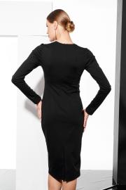 Платье прилегающего силуэта длиной ниже колена из трикотажного полотна. Изделие с округлой горловиной. По переду с декоративными вставками в виде аппликации. Застежка на потайную молнию в среднем шве спинки. Рукав длинный втачной.