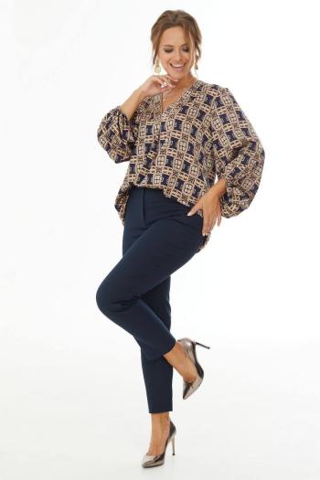Платье женское, приталенного силуэта, длиной миди из плательно-блузочной ткани. Платье со спущенной линией плеча. Отрезное по линии талии, для лучшего прилегания по талии вставлена резинка. Лиф переда с центральной отрезной планкой и застежкой на петли, пуговицы. Юбка со средним швом сзади. Рукав одношовный, длинный, собран на притачную манжету и застежкой на петли, пуговицы. Рукав с глубокой декоративной складкой по линии локтя. Воротник рубашечного типа на отрезной стойке.