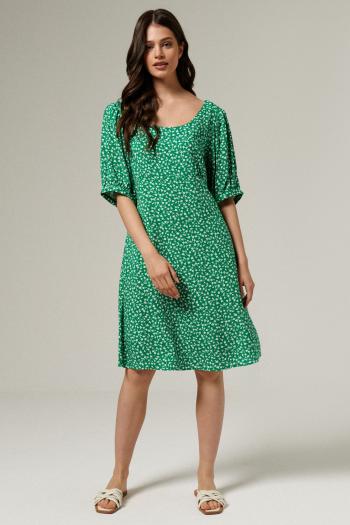 Платье женское нарядно-повседневное на трикотажной подклаке полуприлегающего силуэта расширенное к низу. Выполнено из шифона с принтом. Вырез горловины круглый на обтаке по центру на застежке на навесную петлю и пуговицу. Рукав втачной по низу собран на резинку. Декором служат рюши по лифу из основной ткани и съемный пояс. Платье можно носить с поясом и без него.
