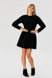 Платье приталенного силуэта с пышной юбкой и рукавами, талия за счет множества выточек в этом платье особенно подчеркивается, выполнено в ткани из нейлонового трикотажа, что помогает изделию держать форму. Платье оригинальное, комфортное и в выгодном свете подчеркивает достоинства фигуры. Длина изделия 89 см