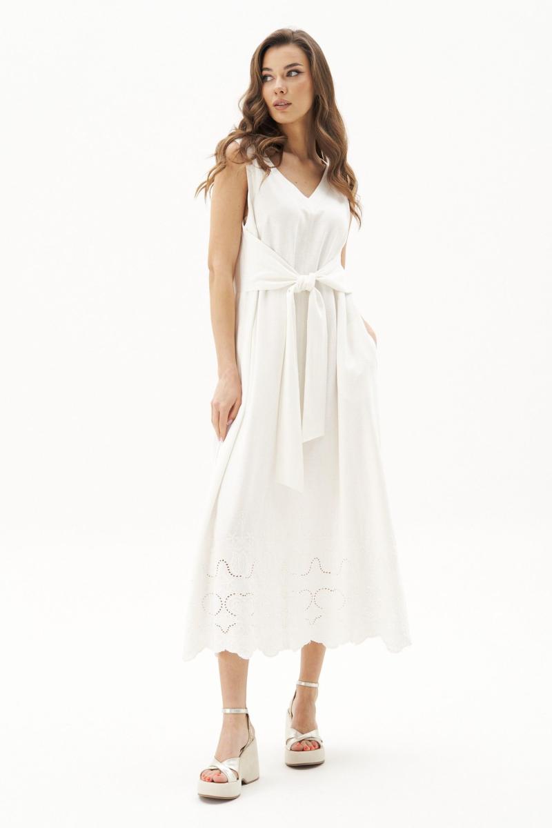 Главная составляющая лета - конечно же платье , а главное полотно лета - конечно же лён. Мы обожаем этот лёгкий и домашний материал, который всегда эффектен и выглядит дорого. Роскошное и лаконичное платье А-силуэт, свободного покроя с V-образным вырезом и поясом-бантом. Модель с прилегающим верхом и расширенным низом максимально выгодно подчёркивает талию и зрительно вытягивает силуэт. Длина платья около 127 см.