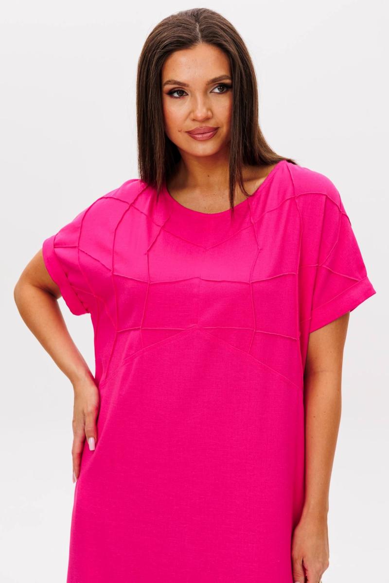 Такое платье-основа вашего летнего гардероба! Свободный упрямленный силуэт, цельнокроенный покрой. Полочка с отрезной кокеткой, изысканно декорированной строчками-защипами. Спинка с отрезной кокеткой и застежкой каплей. По низу рукава-отложной манжет.