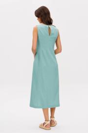 Платья, даже для тех, кто надевает их лишь по особым случаям, в теплое время года становятся такой же необходимостью, как уютный свитер зимой. Легкость, свобода движений и естественная женственность-все это делает их незаменимыми спутниками лета. Комфортное смешанное полотно лен с вискозой, полуприлегающий силуэт, круглая горловина, эффектная застежка-капля на спинке. Необычный крой 6-ю вертикальными рельефами в верхней части конструктивно задают структурность платью, выгодно подчеркивая силуэт. Длина изделия около 117 см.