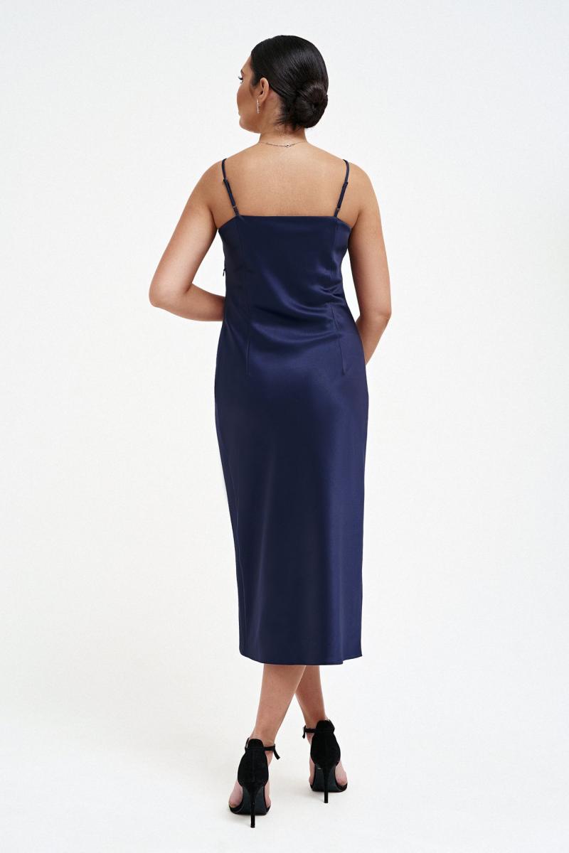 Платье - миди прилегающего силуэта выполнено из струящегося шелк - сатина, на регулируемых бретелях. Длина изделия в базовом размере 106 см (размеры 38-48, 56-60), 107см ( размеры 50-54).