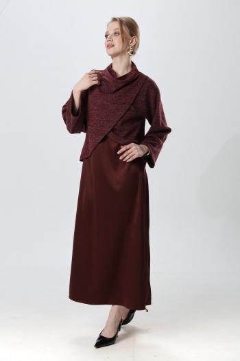 Платье женское нарядное, изготовлено из трикотажного полотна. Горловина круглой формы с кантом. На полочке дизайнерская вышивка. Спинка со средним швом и декоративной застежкой вверху. Рукава спущенные с кантом по низу.