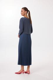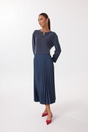 Платье женское прямого силуэта, состоящее из двух видов ткани. Лиф на подкладке. По переду лифа обработана застежка декоративной молнией. Спинка цельнокроеная. Плечо спущено. Рукав одношовный длинный. Горловина округлой формы, обработана узкой планкой. Юбка платья выполнена из гофрированного полотна. Декоративные элементы и фурнитура могут отличаться от заявленных на фото. Цвет материала может отличаться по тону в зависимости от настроек вашего монитора!