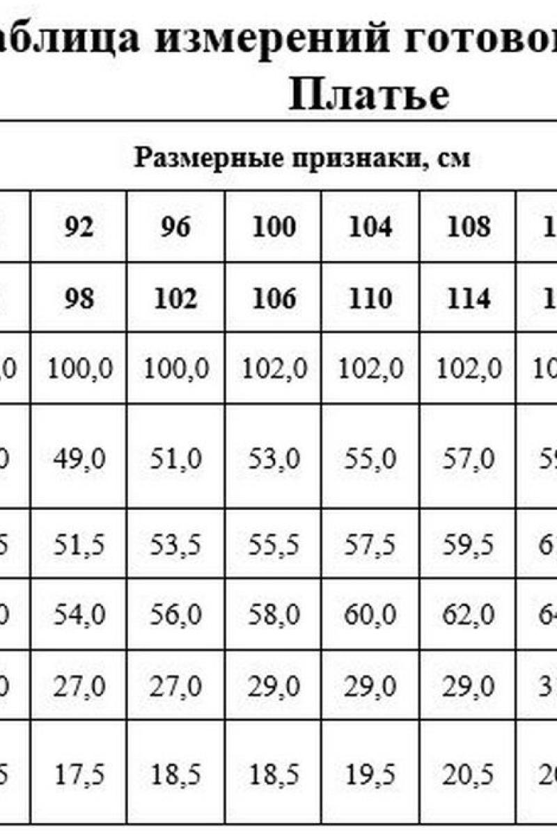 Таблица размеров