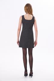 Платье-футляр прилегающего силуэта с акцентной застёжкой на пуговицы по переду длиной выше колена. Горловина круглая.