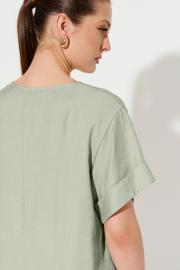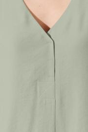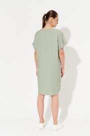 Платье женское из вискозной ткани для повседневной носки. Платье прямого силуэта с коротким втачным рукавом оформленым отложной манжетой. Горловина V- образная. В боковых швах изделия прорезные карманы. Спинка со средним швом.