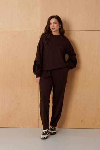 Платье двухслойное: – А-силуэт, удлинённое – первый слой выполнен из мягкого ворсистого с лёгкой полупрозрачностью трикотажа, очень приятного на ощупь – круглый вырез горловины – рукава длинные, клёш – второй слой — комбинация из струящегося атласа – бретели регулируются