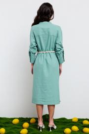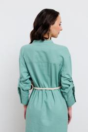 Платье-рубашка прямого кроя. В боковых швах расположены удобные карманы. Рукав длинный на манжете, с патой, что позволит носить его даже в жаркие дни. Застежка - сквозная широкая планка, на пуговицы изготовленные из натуральной ракушки.Платье - рубашка подойдет на все случаи жизни: как для работы, повседневной носки и даже для торжественных мероприятий.Прямой силуэт не сковывает движения, в нем вы будете чувствовать себя комфортно в течении всего дня.Это платье универсальная находка для женщин любого телосложения, оно не сдавливает тело в области груди и бедер. А наличие пояса поможет скорректировать фигуру в песочные часы.Материал из которого выполнено платье хорошо поглощает влагу, не вызывает аллергии, обладает высокой степенью воздухопроницаемости. Льняное платье имеет большой срок службы, сохраняет первоначальный внешний вид даже после множества стирок. Оно не растягивается и не садится после стирки. Ткань не просвечивается, и не катается после носки.Длина изделия - 108 см