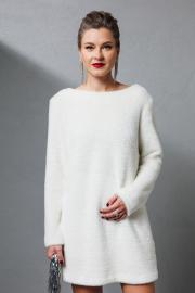Пушистое мини платье из эко-меха. Плятье прямого силуэта, по спинке вырез с декоративной тесьмой. Длина платья от плечевого среза - 81 см