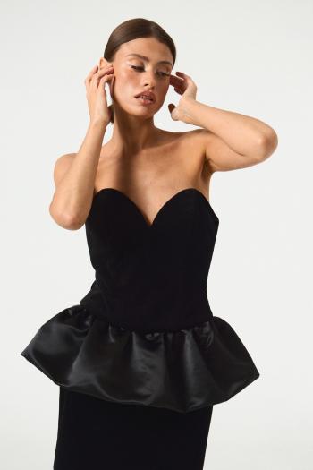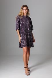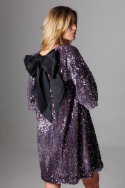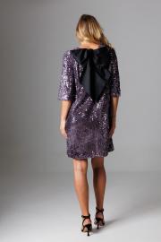 Элегантное платье А-силуэта из мягкого трикотажного полотна велюр с пайетками и текстильными лентами на спинке, которые завязываются в эффектный бант.