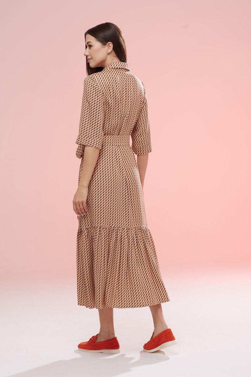 По переду нагрудные вытачки, цельнокроенные планки с функциональной застёжкой на петли-пуговицы. В боковых швах функциональные карманы. Горловина обработана воротником рубашечного типа со стойкой с застёжкой на петлю-пуговицу. Шикарная посадка по фигуре. По низу платья притачной волан со сборкой, высотой 40см. Длина платья по спинке 123см. Рукав втачной, одношовный, с цельнокроенной манжетой, высотой 4см. Длина рукава 35,5см. Декор: пуговицы могут отличаться от заявленных на фото. Это стильное платье станет неотъемлемой частью Вашего гардероба. Цвет платья может отличаться на полутон от заявленного на фото.