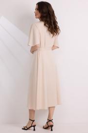 Элегантное платье А-образного силуэта. Выполнено из шелковистой ткани средней плотности с легким атласным блеском. Платье отрезное по талии. Верх платья свободный с цельнокроеным рукавом-крылышком. По плечам аккуратная драпировка. По спинке застежка на потайную молнию. Платье на подкладке. Длина платья от плечевого шва 126 см Длина рукава 33 см