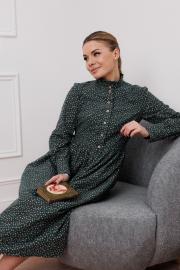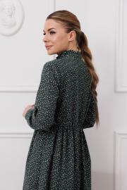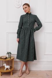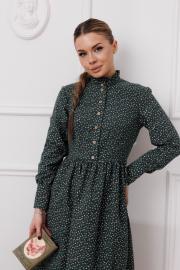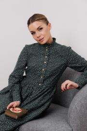 Платье приталенного силуэта , отрезное по талии. Прилегание за счет нагрудных и талиевых вытачек. По спике резинка.По горловине декоративная стойка с рюшами. Широкие манжеты. Нижняя часть платья объемная, за счет сборки на юбке.Длина юбки от талии — 78-80см, длина по спинке — 118 см. Ткань плательная фланель - мягкий ворс такой, что первое, что Вы почувствуете - это легкую бархатистость,ткань держит форму. Она покажется достаточно легкой,но Вам будет тепло, но не жарко