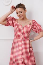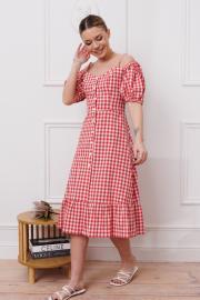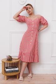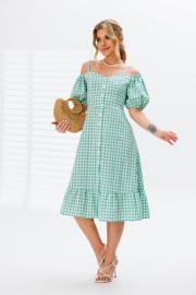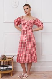 Летнее платье-сарафан с объемными рукавами. Эффектное летнее платье-сарафан с объемными рукавами и летящей юбкой. Бретели обеспечивают комфортную посадку, а сборка на спинке с ниткой-резинкой гарантирует плотное прилегание лифа. Платье отрезное по талии, с юбкой, оформленной оборкой (волан со сборкой) по низу. Сборка под резинку на верхнем и нижнем крае рукавов. Длина миди, без подкладки, с застежкой на петли и пуговицы.Длина юбки - 72-74 см. Длина по боковому шву - 90-91см. Ткань идет вареный хлопок-называется так, потому что прошла обработку горячей водой(энзимную стирку). Благодаря энзимной стирке на ткани образуется легкий неравномерный краш - эффект.