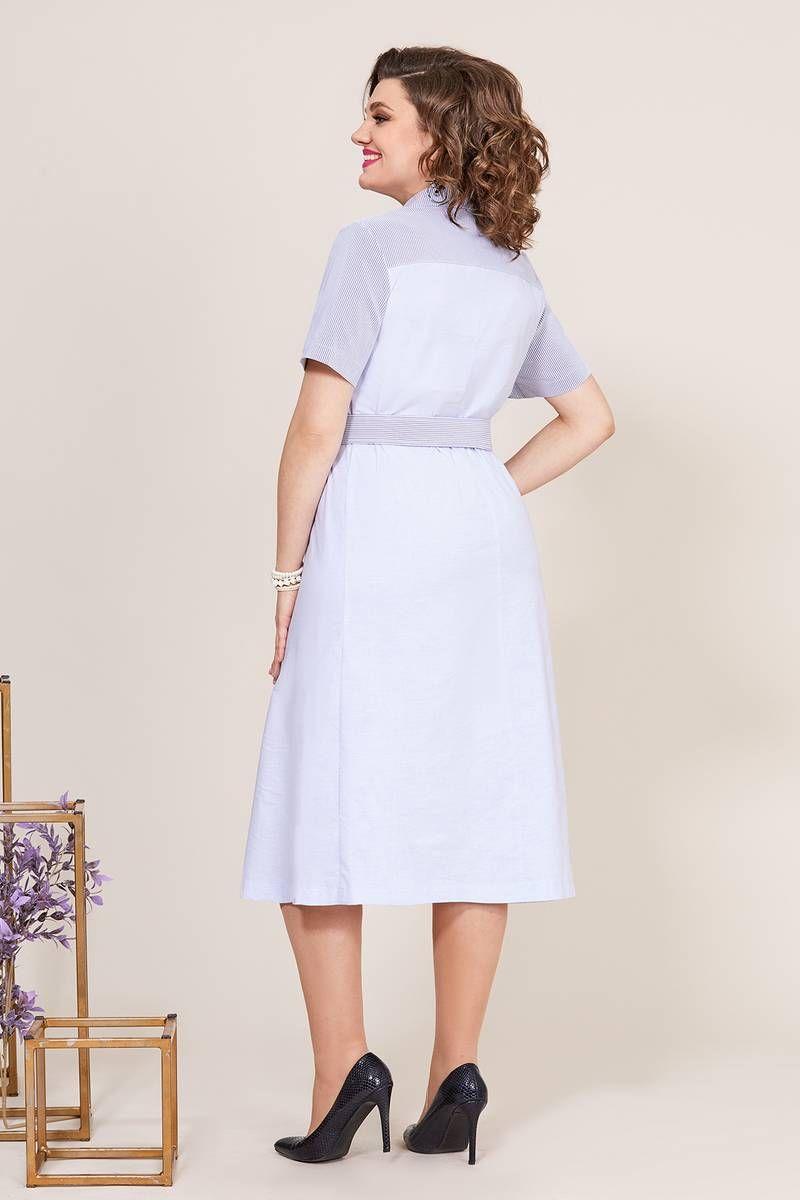 Летнее платье полу- прилегающего силуэта, выполнено из хлопковой ткани двух видов, с широкой полоской и хлопком с меланжем, также в качестве отделки используется кружево. На полочке обработана застежка с планкой на петли-пуговицы, горловина обработана воротником на стойке. Также на полочке обработана кокетка из ткани в полоску, с вставкой из кружева и клапанами из ткани в полоску, по линии талии съемный пояс с пряжкой. Рукав втачной, оптимальной длины, выполнен из ткани в полоску. Спинка с кокеткой из ткани в полоску, со средним швом и вытачками. Летнее платье выполнено в офисном стиле прекрасно подойдет для летних рабочих будней!