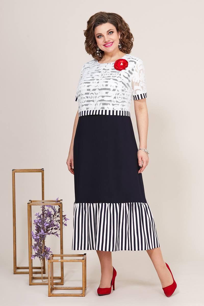 Летнее платье свободного силуэта, выполнено из штапеля в полоску, однотона и сетки с цветами. Горловина платья округлой формы, на обтачке, лиф платья выполнен из штапеля в полоску и сетки с цветами, отрезной по линии талии и декорирован планкой из полоски и съемной брошью «красный мак». Юбка платья расклешенная, выполнена из однотона, по низу притачной волан со сборкой из штапеля в полоску. Спинка идентична полочке, отрезная по линии талии и с воланом по низу. Рукав втачной, выполнен из сетки с цветами, по низу притачная планка из штапеля в полоску. Эффектное платье из легких тканей — отличный выбор для вашего летнего гардероба!
