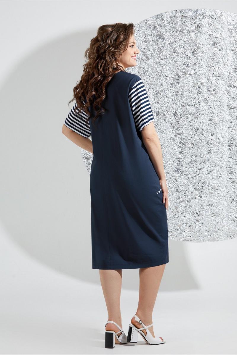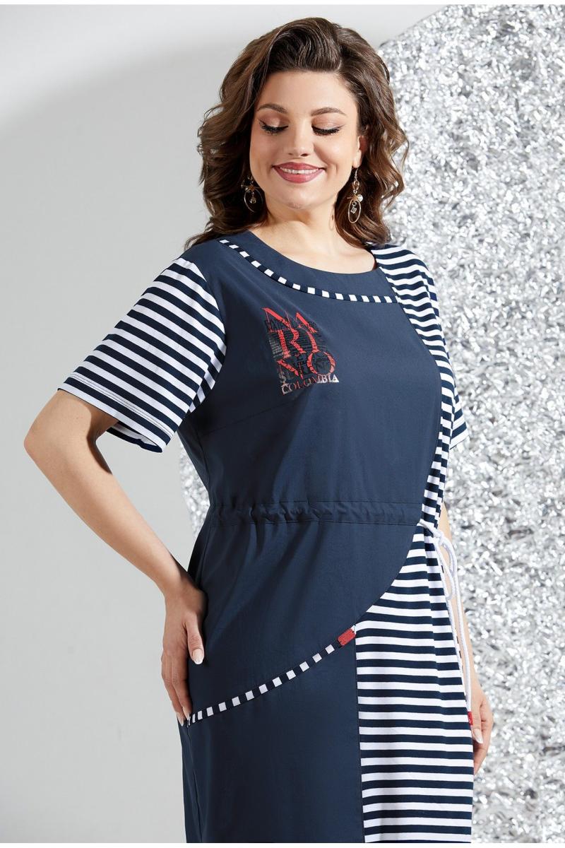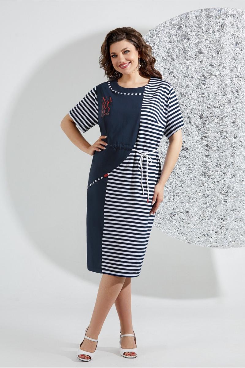 Летнее платье полуприлегающего силуэта, выполнено из вискозы в полоску и хлопковой ткани. Горловина платья округлой формы, на широкой обтачке с отделкой кантом в полоску. На полочке выполнены ассиметричные подрезы, по одной стороне полочка из вискозы в полоску, другая сторона из хлопкового однотона. По линии талии обработана кулиса с шнуром, по нижней части юбки выполнен еще один декоративный подрез с отделкой кантом. Рукав втачной, укороченный, из вискозы в полоску. Спинка из однотонного хлопка, со средним швом и вытачками. На лифе по стороне выполненной из однотонного хлопка выполнена термо-аппликация контрастного цвета. Платье выполненное в спортивном стиле отличный вариант для ценителей комфорта и стиля!
