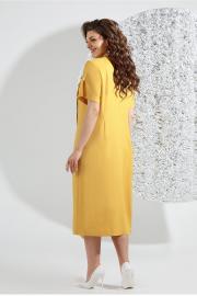 Летнее, женское платье свободного покроя, выполнено из летней ткани лен-вишер. Горловина платья округлой формы, на притачной обтачке из основной ткани, на полочки обработаны вытачки. Также на полочке выполнен декоративный элемент по линии груди, присборенный волан из основной и кружевной ткани, который перекрыт по одной стороне широкой патой, все это украшено бусинами на прокол. По нижней части полочки, с одной стороны выполнен разрез, который декорирован притачным воланом. Спинка платья из основной ткани, со средним швом и вытачками, рукав втачной, укороченный, с разрезами по низу. Эффектное, летнее платье для обладательниц роскошных форм добавит в ваш образ романтики!