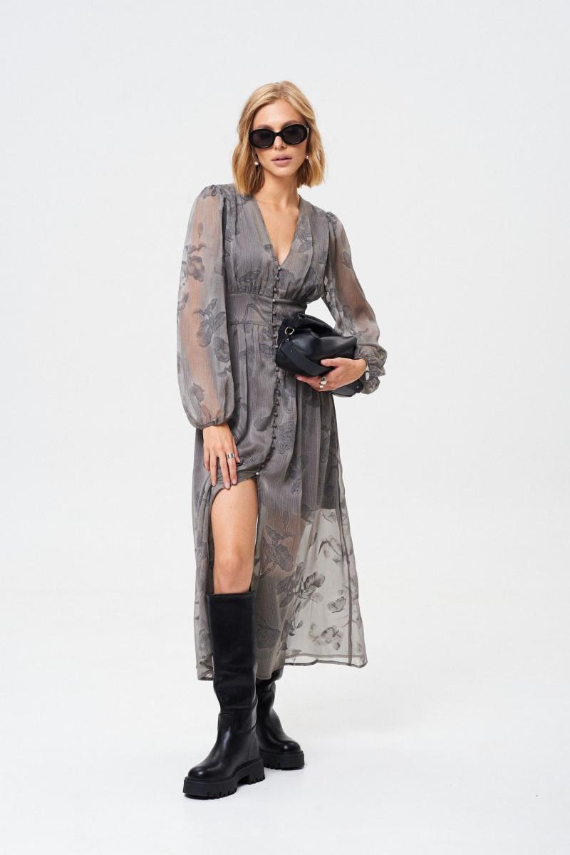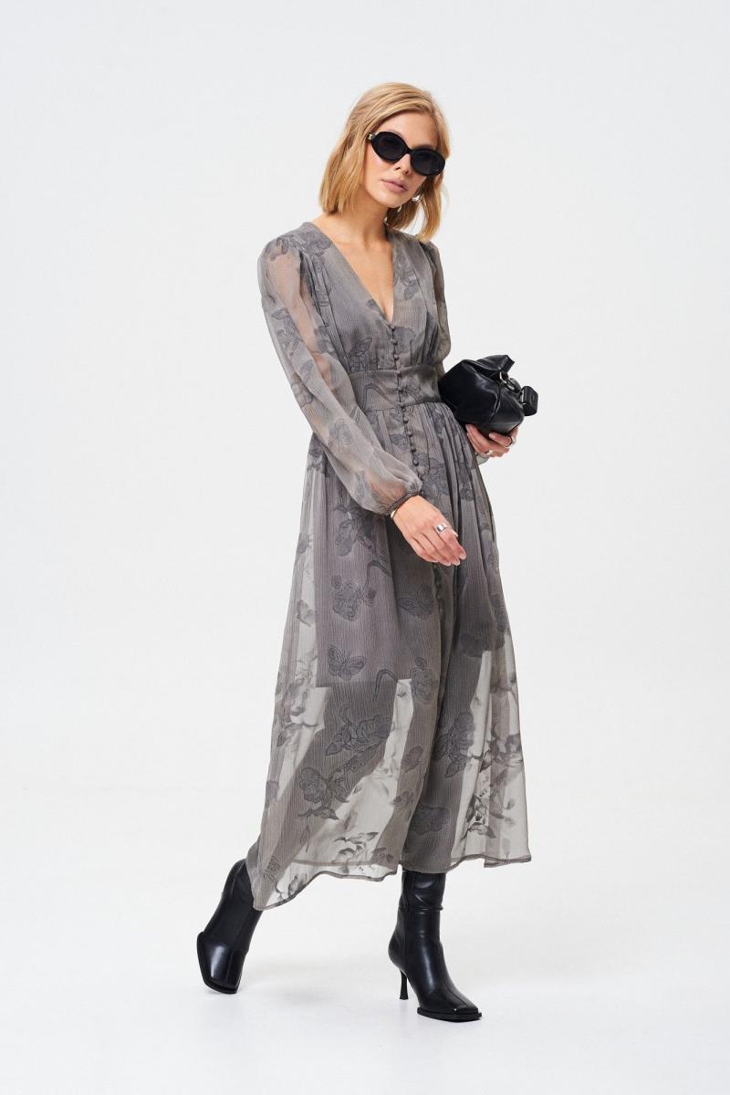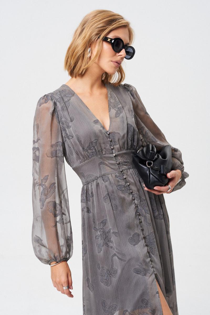 Платье из летящей легкой ткани. Ткань с Crush-эффектом и с дизайнерским принтом с использованием печати "Флок". Изделие на подкладке с застежкой на пуговицы, отрезное по линии талии. Платье можно надевать как на праздничный вечер, так и на повседневный выход. Оно универсальное! Длина платья 131 см Длина рукава от воротника 73 см. ОГ 42 р-р - 90 см, 44 р-р - 94 см, 46 р-р - 98 см, 48 р-р - 102 см, 50 р-р - 106 см. ОТ 42 р-р - 70 см, 44 р-р - 74 см, 46 р-р - 78 см, 48 р-р - 82 см, 50 р-р - 86 см.