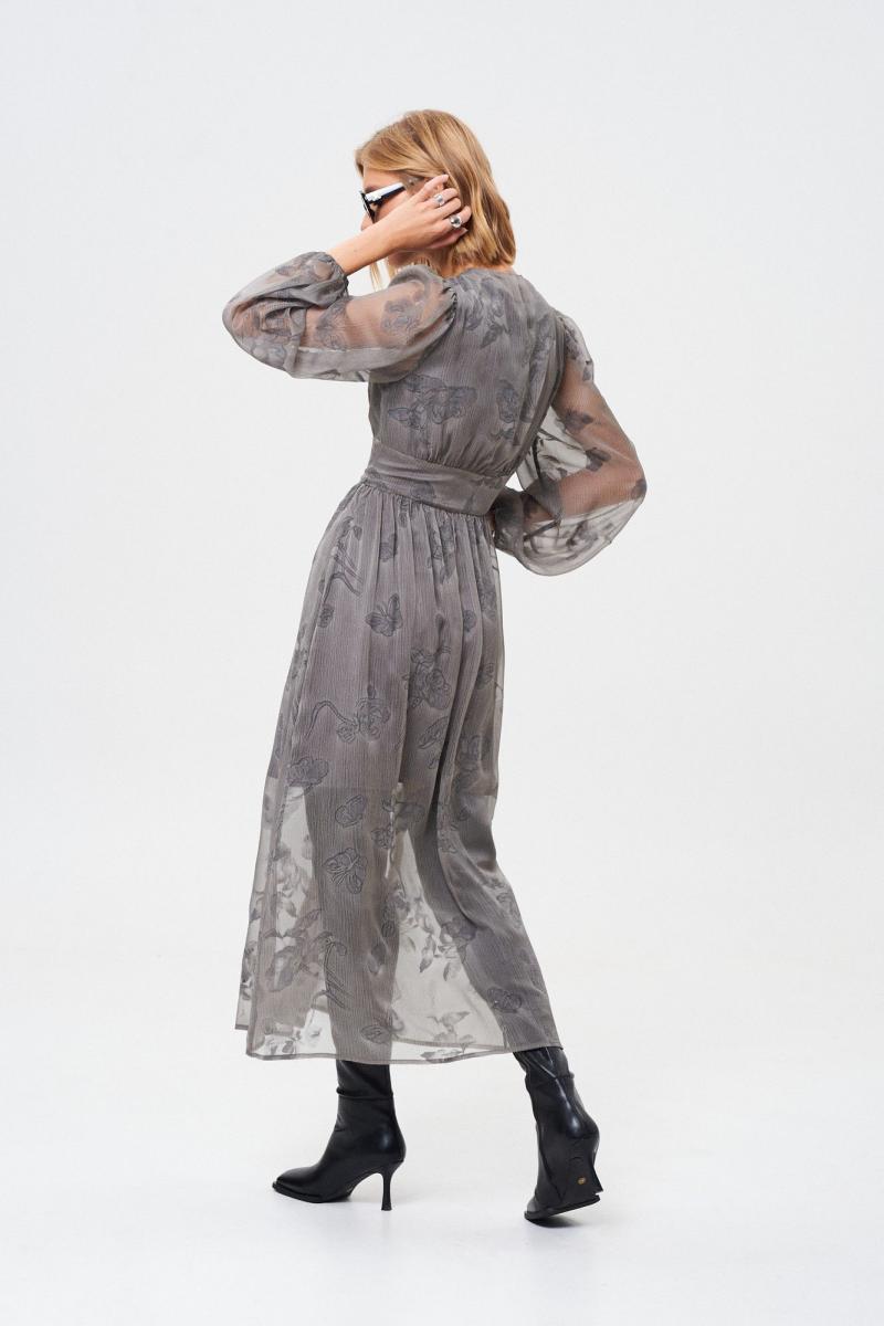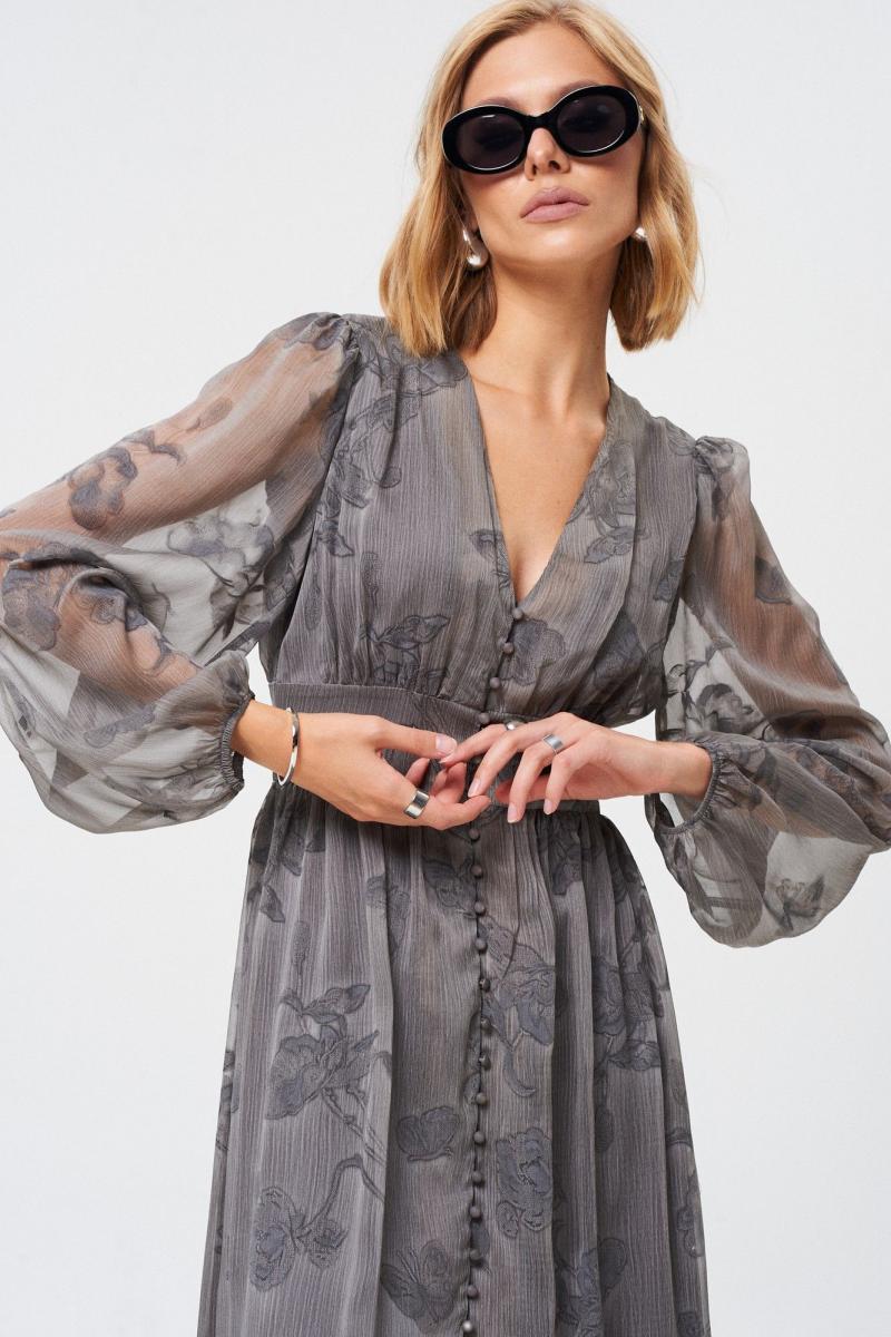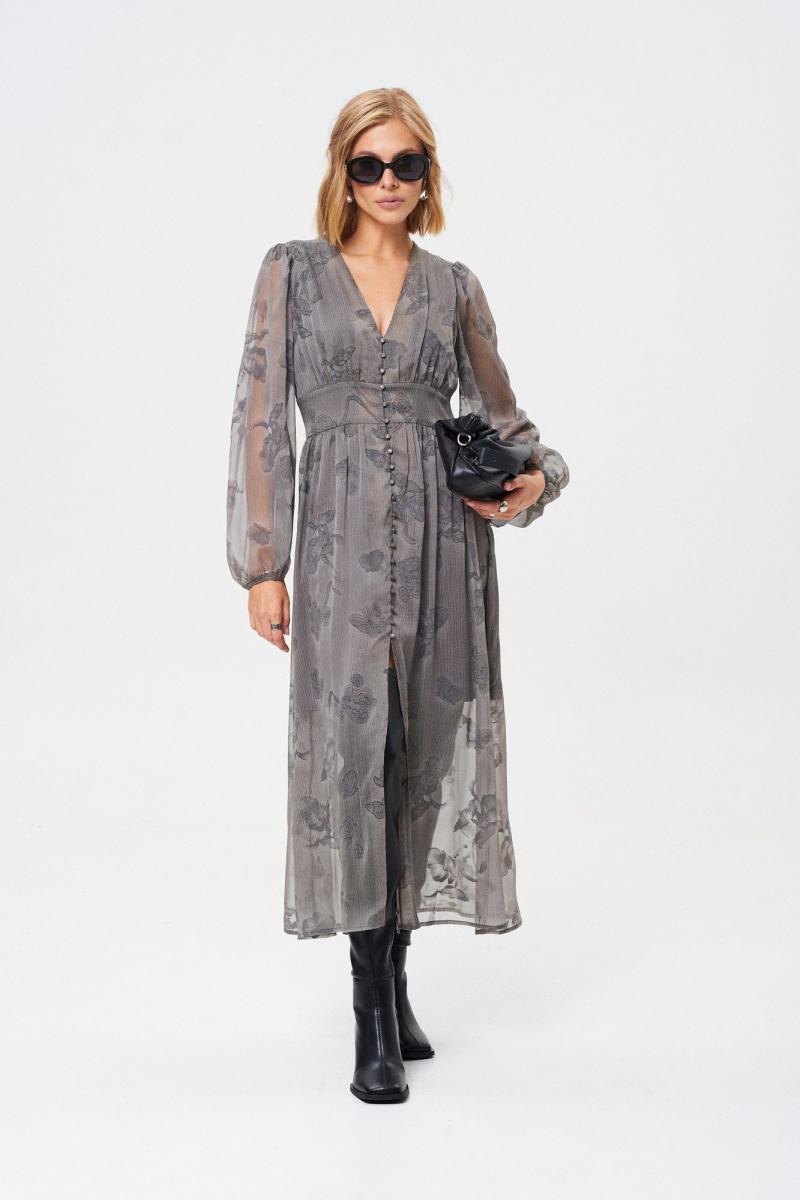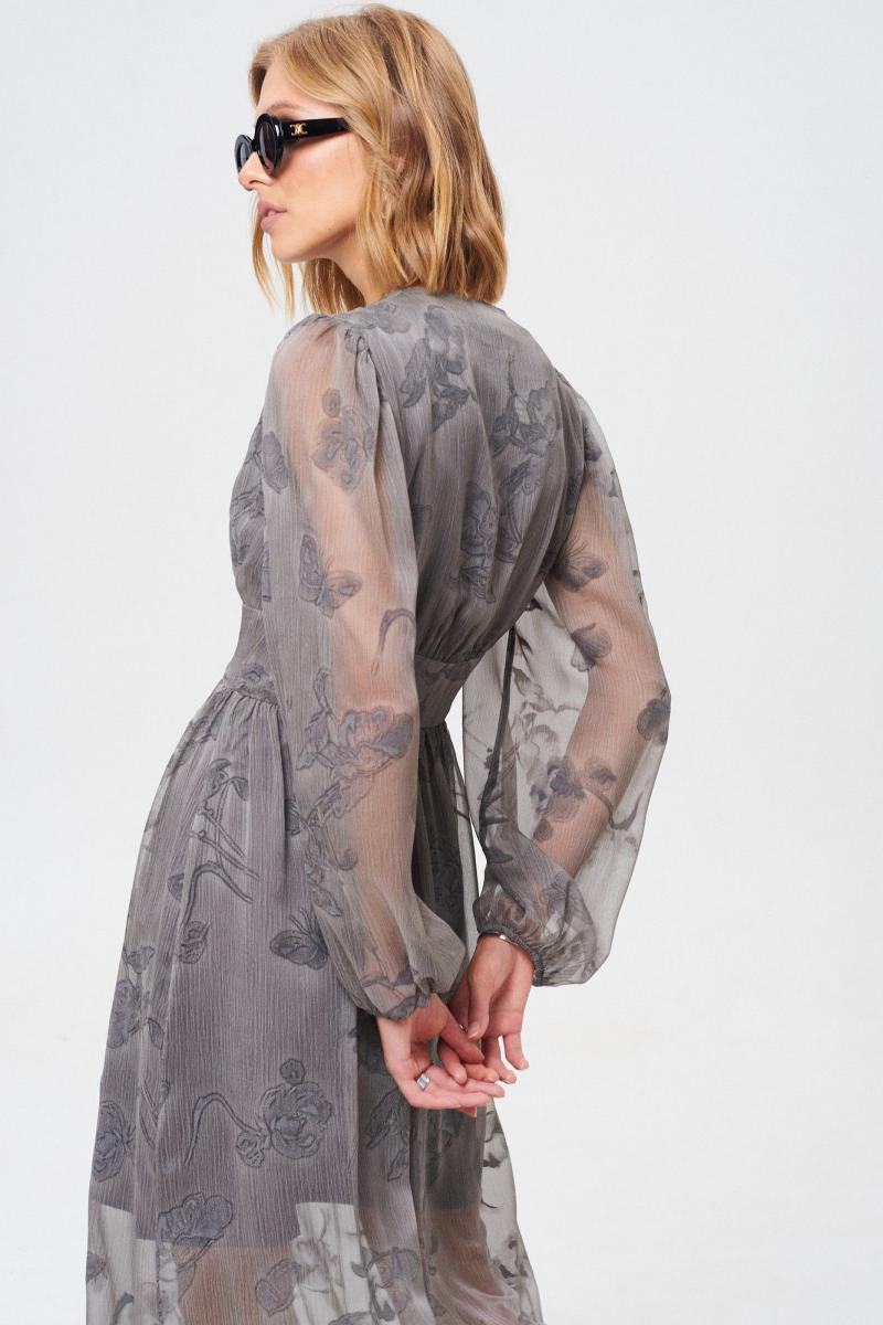 Платье из летящей легкой ткани. Ткань с Crush-эффектом и с дизайнерским принтом с использованием печати "Флок". Изделие на подкладке с застежкой на пуговицы, отрезное по линии талии. Платье можно надевать как на праздничный вечер, так и на повседневный выход. Оно универсальное! Длина платья 131 см Длина рукава от воротника 73 см. ОГ 42 р-р - 90 см, 44 р-р - 94 см, 46 р-р - 98 см, 48 р-р - 102 см, 50 р-р - 106 см. ОТ 42 р-р - 70 см, 44 р-р - 74 см, 46 р-р - 78 см, 48 р-р - 82 см, 50 р-р - 86 см.
