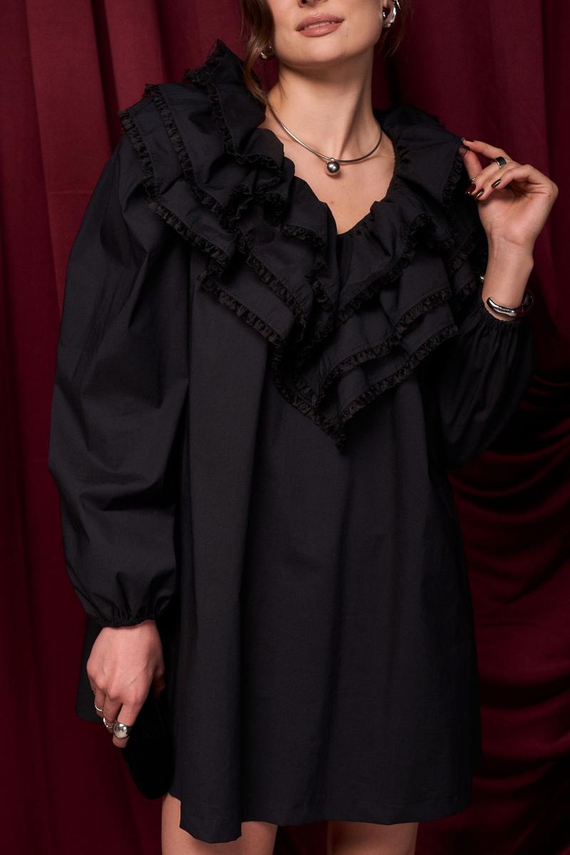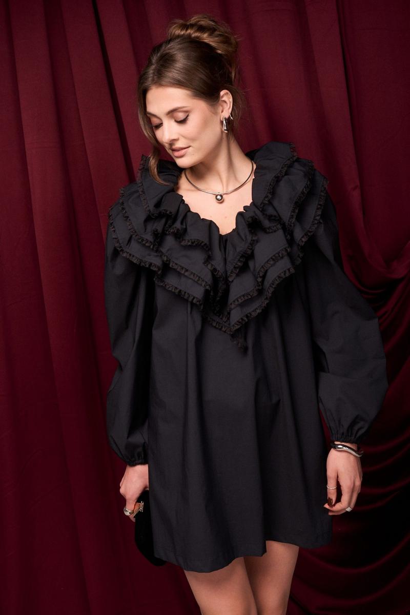 Платье из хлопка премиального качества. Изделие с пышным акцентным воротником. В боковых швах карманы. Платье на подкладке. Воланы декорированы тесьмой. Длина платья 90 см 42-44 р-р ОГ 127-129 см, ОТ 136-138 см; 46-48 р-р ОГ 131-133 см, ОТ 140-142 см