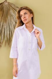 Комфортное хлопковое платье длиной миди свободного прямого кроя со стояче-отложным рубашечным воротником. Рукава втачные длиной три четверти. По боковым швам - разрезы. Изделие без подкладки, с карманами.
