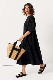 Длинное летнее платье – комфортная одежда для теплого вечера или прохладного дня. В нем вы будете выглядеть элегантно во время прогулки по городу, дружеской или романтической встречи. Подберите соответствующие аксессуары, наденьте обувь на удобной танкетке – наслаждайтесь отдыхом и своим безупречным внешним видом. Стильное хлопковое платье с объемными рукавами ¾ отлично смотрится на фигуре любого типа, благодаря слегка приталенному фасону. Фигурные швы и защипы создают красивые волны на свободной юбке. Длина изделия – ниже колена, вырез горловины – круглый. Вы можете выбрать и заказать модное летнее платье на выгодных условиях.